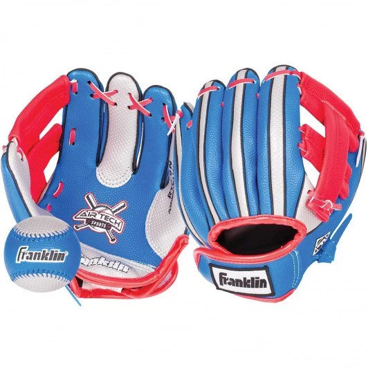 Franklin®AIR TECH®series gloves offer a soft and durable glove for any first-time player. These gloves are easier for the younger players to squeeze closed and includes a lighter weight ball for learning to catch.