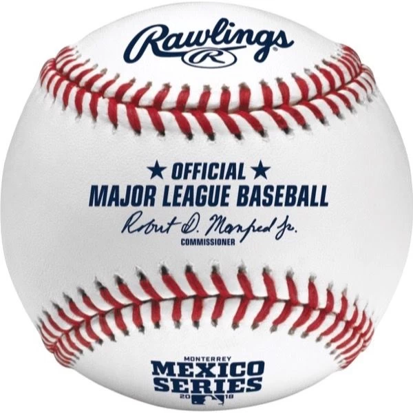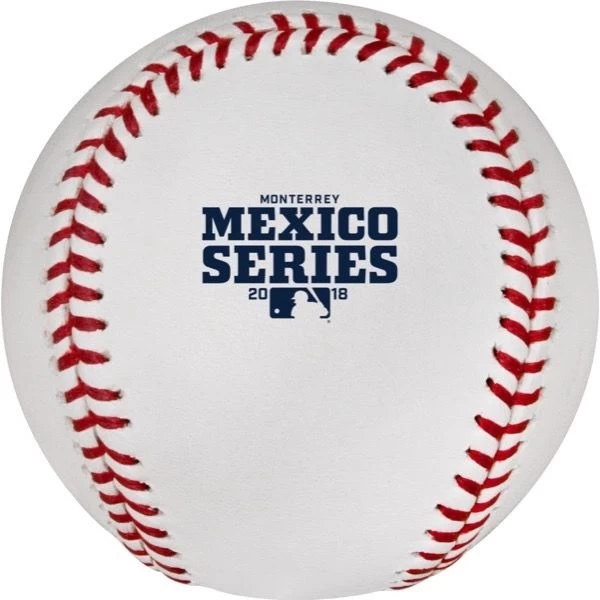 This is the Official ball used on-field during the MLB® Mexico Series®. The Series took place May 4-6, 2018 in Monterrey, Mexico. The ball features the log of the Mexico Series® including the commissioners signature.