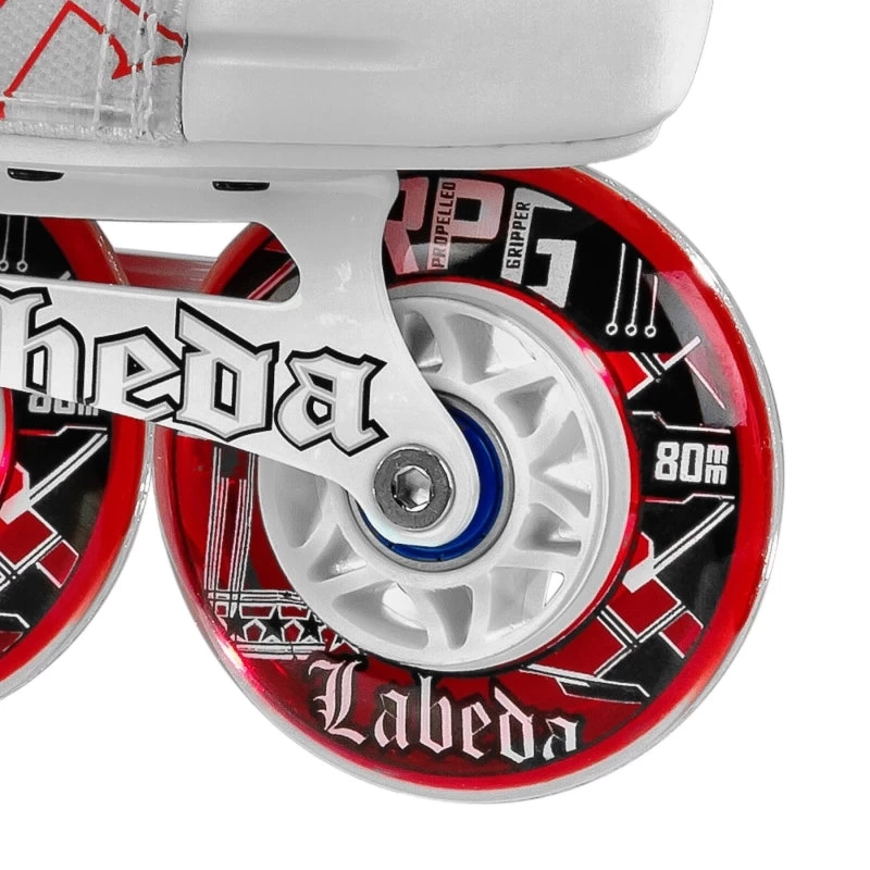 The Tour Hockey FB 500 Inline Skate has the Best Value combined with a clean Look offered in black and white colorways. The BoneLite 500 uses Tour’s signature DPS™ Technology that lowers a player’s center of gravity, making them more agile on their feet accompanied with a powerful stride. The Labeda Eviction L.E. Frame holds four 80mm Labeda RPG wheels (76mm on size 6.0) that make for a responsive and fast feel on indoor surfaces