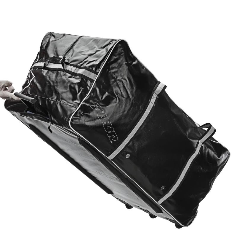 The Tour Team Series Bag is constructed from heavy duty, lightweight, water resistant Tarpaulin material. The bag has a large main compartment and internal zippered stash pocket with multiple venting air grommets for maximum airflow